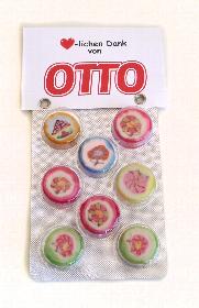 2. Bonbons im Blister mit (edel genieteter) WerbeKarte: